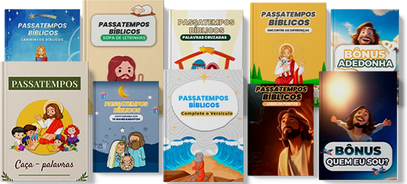 Apresentamos o Passatempo Bíblicos, uma coleção inovadora de atividades cristãs projetada para envolver as crianças de maneira divertida e significativa. Com 8 modelos de atividades cuidadosamente desenvolvidas, seu filho aprenderá sobre Deus enquanto se diverte!